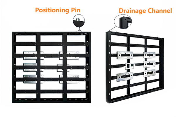 This simple cabinet features an open-back design, with all outdoor LED modules mounted from the front. This structure offers two key advantages: lower manufacturing costs and enhanced heat dissipation due to unobstructed airflow at the rear of the screen.